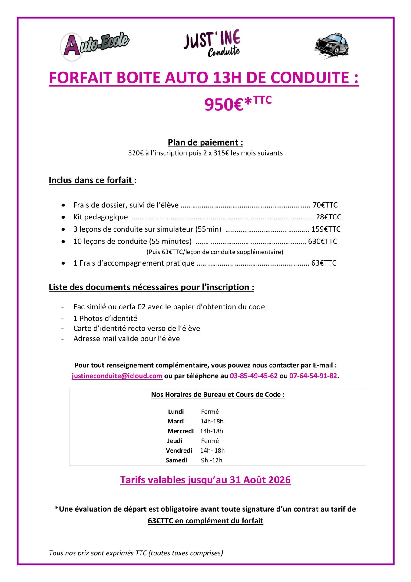 *Evaluation de départ obligatoire avant toute signature d'un contrat.