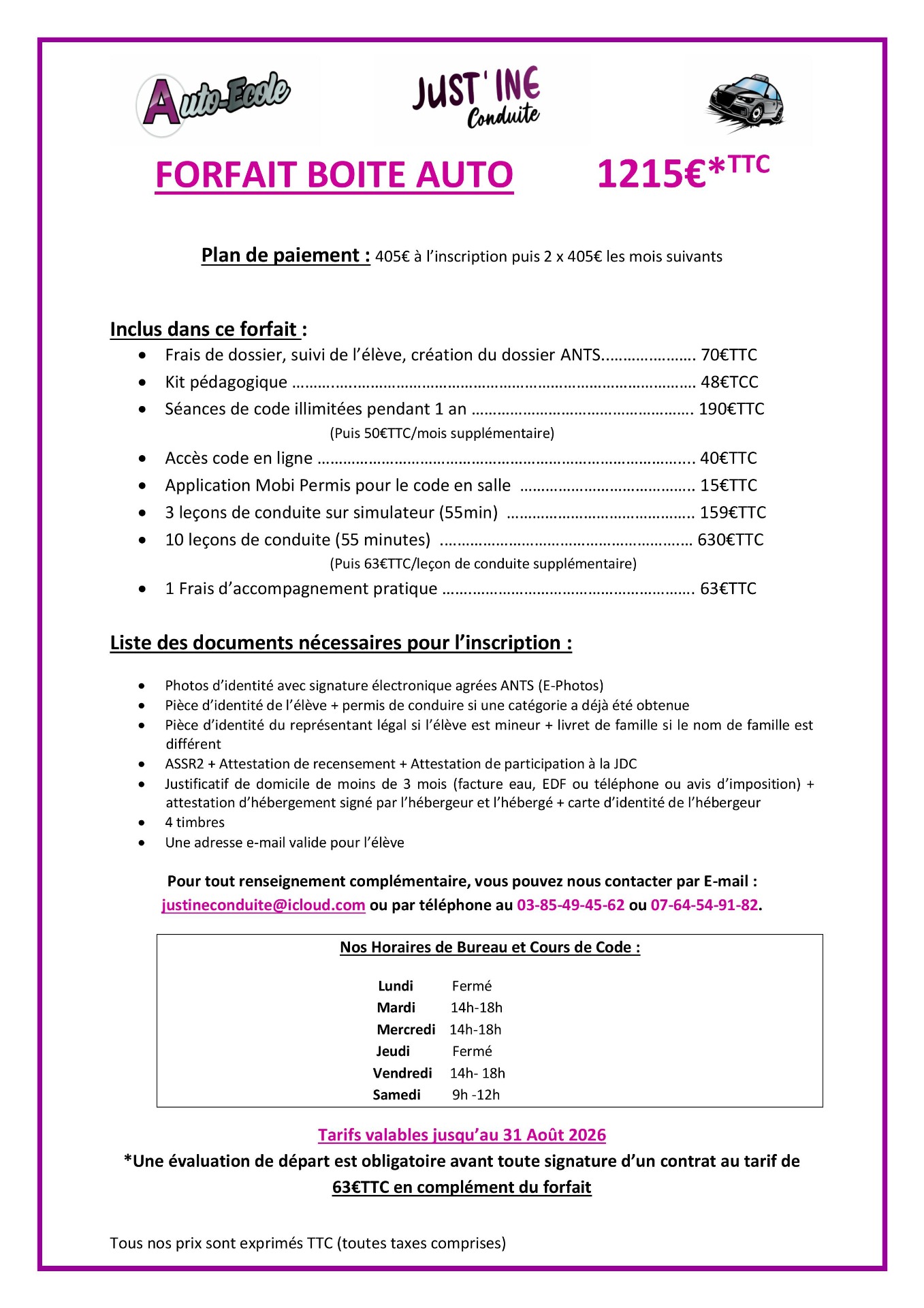 *Evaluation de départ obligatoire avant toute signature d'un contrat.